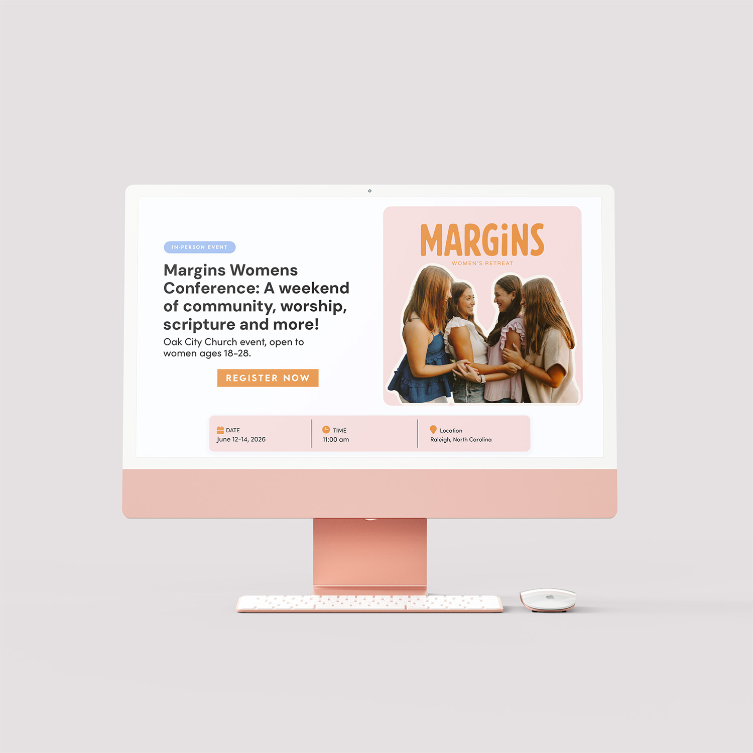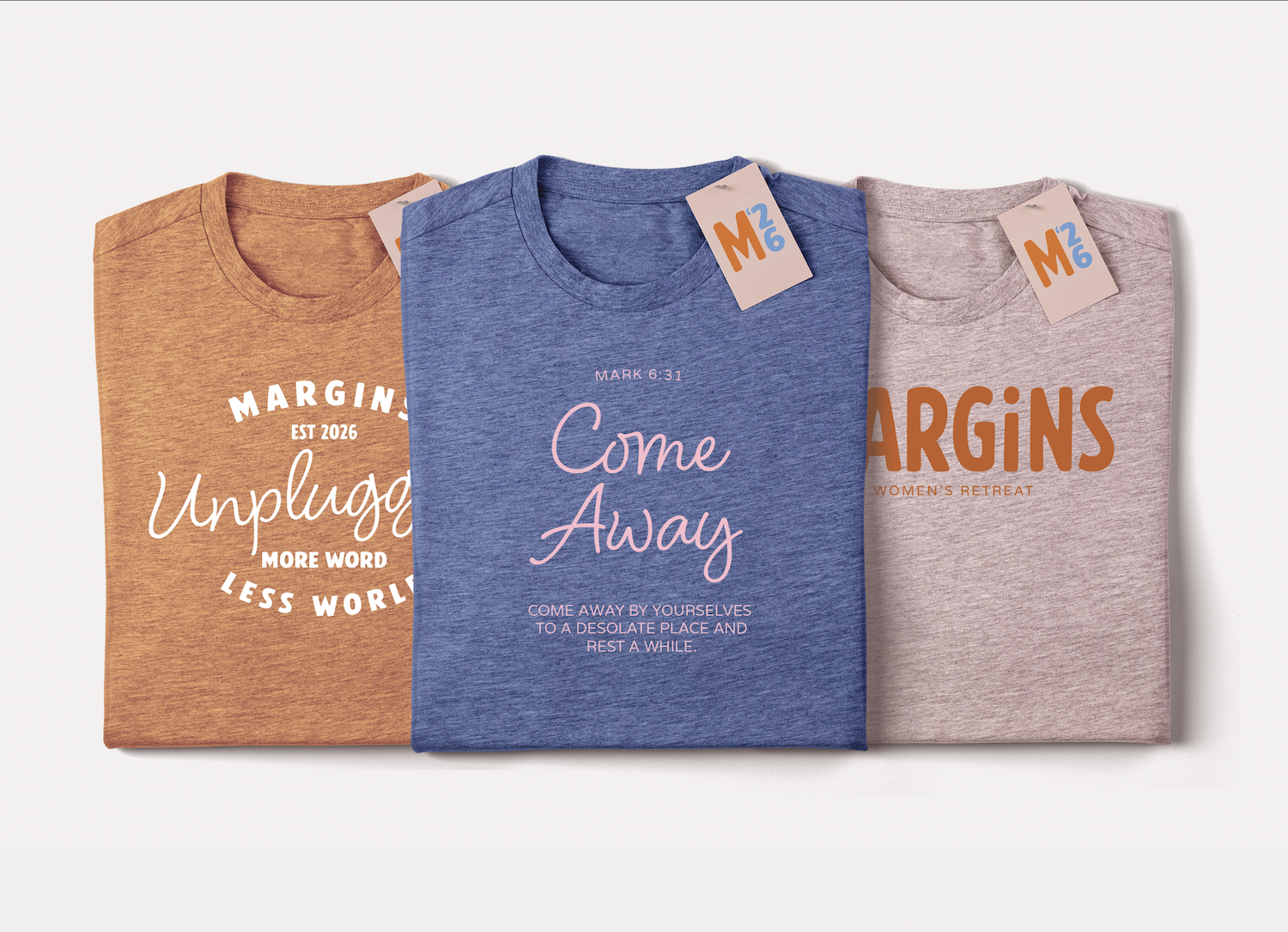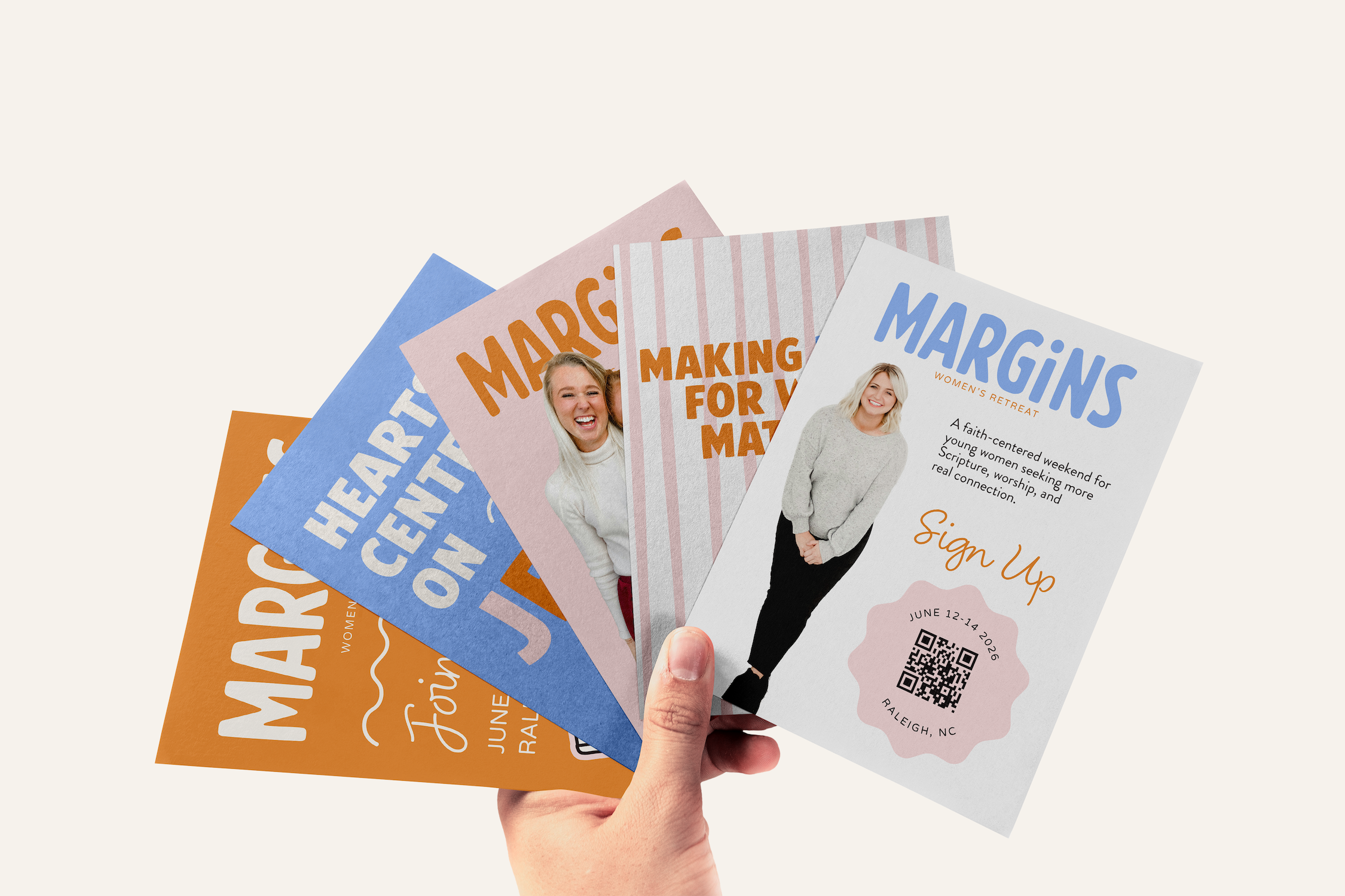Once the visual identity was established, the brand was applied across a range of event materials, including print promotions, apparel, and a website for sign-ups. Together, these pieces created a cohesive experience that helped introduce the retreat, build interest, and support registration.